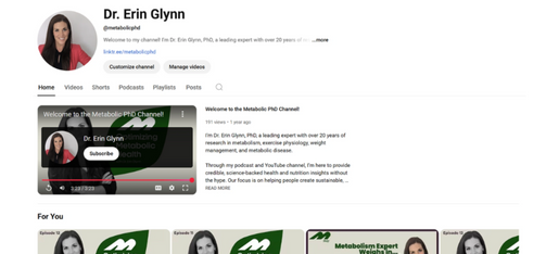 Optimizing Metabolic Health with Dr. Erin Glynn covers health, nutrition, fitness, supplementation, and general wellness topics from a scientific perspective.